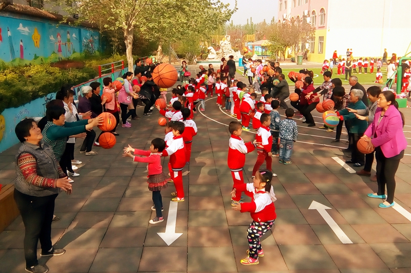 采訪中,四五歲的孩子們正在玩花式籃球。先是一人拍球,接著變幻為兩人牽手拍球,后來(lái)又增加難度到三人共同拍球。寧方安說(shuō),一項(xiàng)活動(dòng)包含了技巧、配合,難能可貴的是這樣的道理是蘊(yùn)含在快樂的運(yùn)動(dòng)當(dāng)中的。