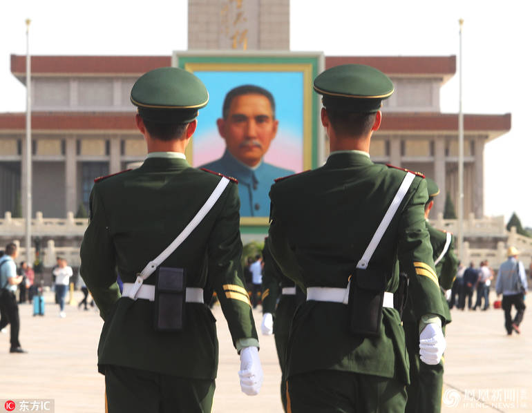 武警戰(zhàn)士在孫中山畫像前站崗執(zhí)勤