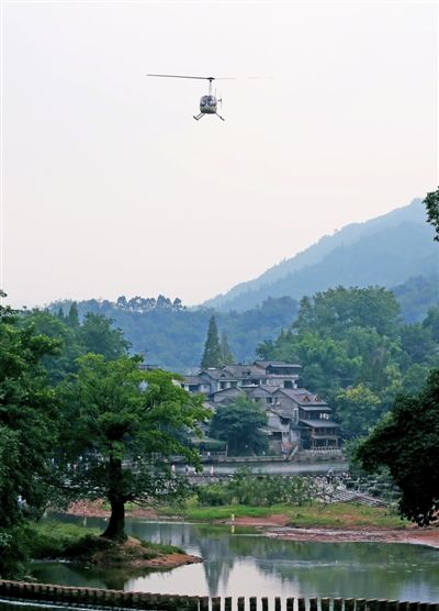 載著王淑彬的直升機抵達柳江古鎮(zhèn)